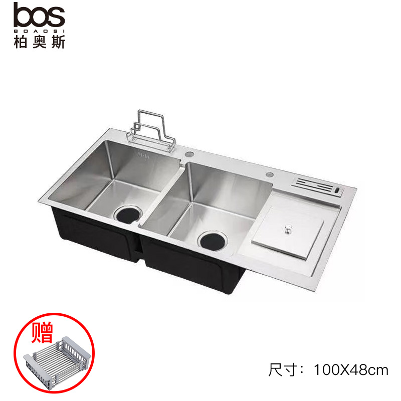 多功能手工雙盆帶濾水籃(SUS304)